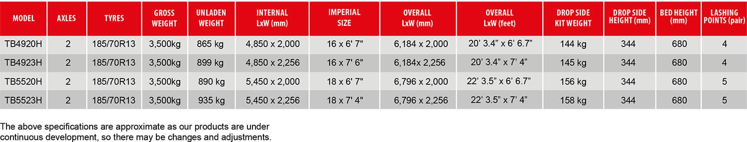 With full type approval (ECWVTA), they’re manufactured with a strong fully welded and galvanised chassis, ensuring maximum strength and durability, load capacity, flexibility and safety. Innovative chassis design, combined with all round easy access, excellent loading angle, drop sides and years of trailer design expertise have produced the perfect trailer for the building, landscaping and agricultural industries.